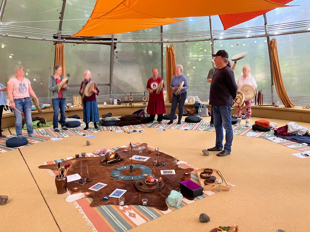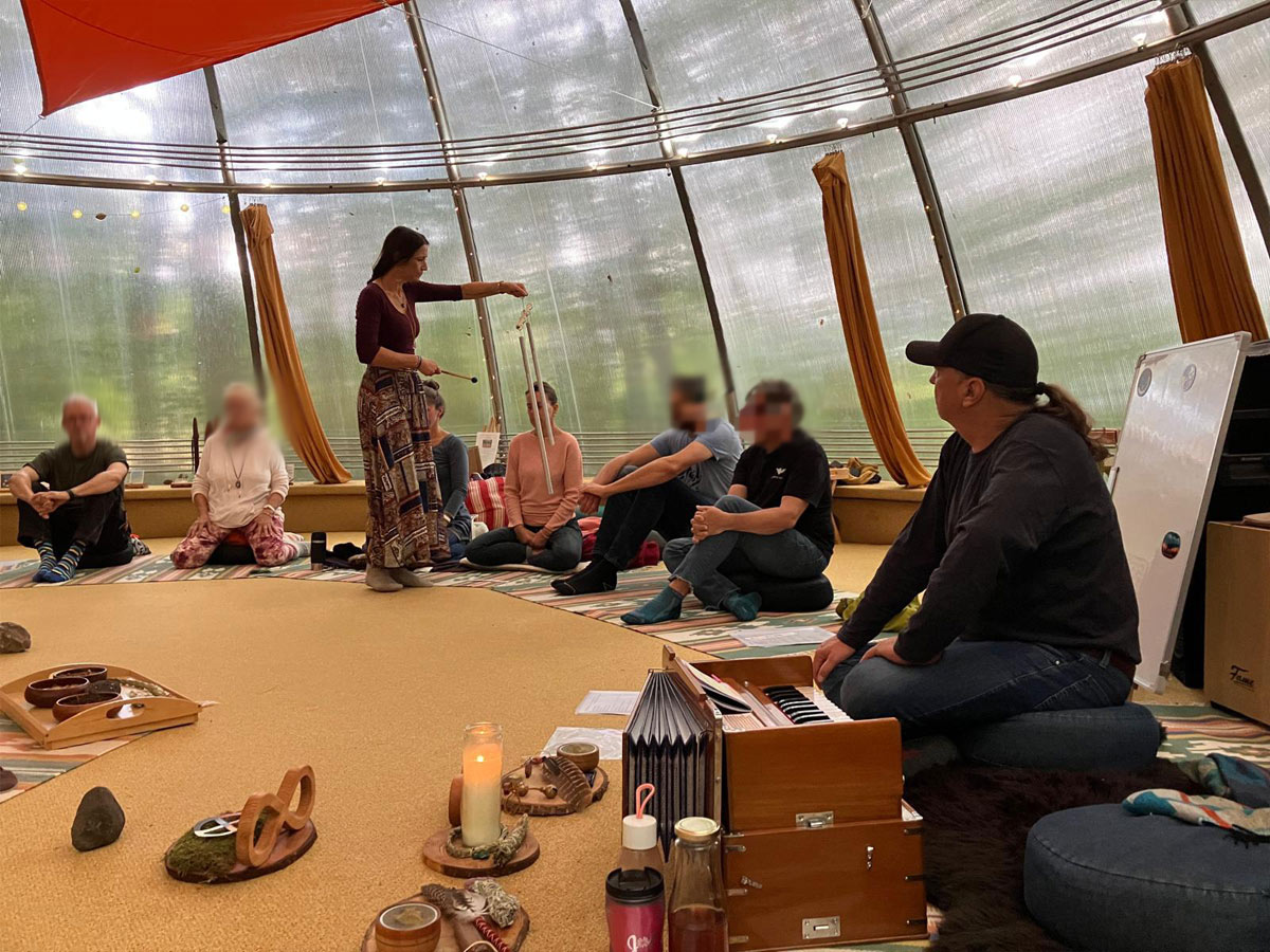 Unter anderem werden wir Elemente aus der indianischen Tradition erleben, aus heilsamer Natur- Klang und Energiearbeit, die Verbindung mit uns selbst auf allen Ebenen (physisch, emotional, mental und spirituell) sowie Verbindung mit der Natur und allen Elementen, traditionelle Rituale, Trommelreise, energetisches Räuchern und auch eine Schwitzhütte.