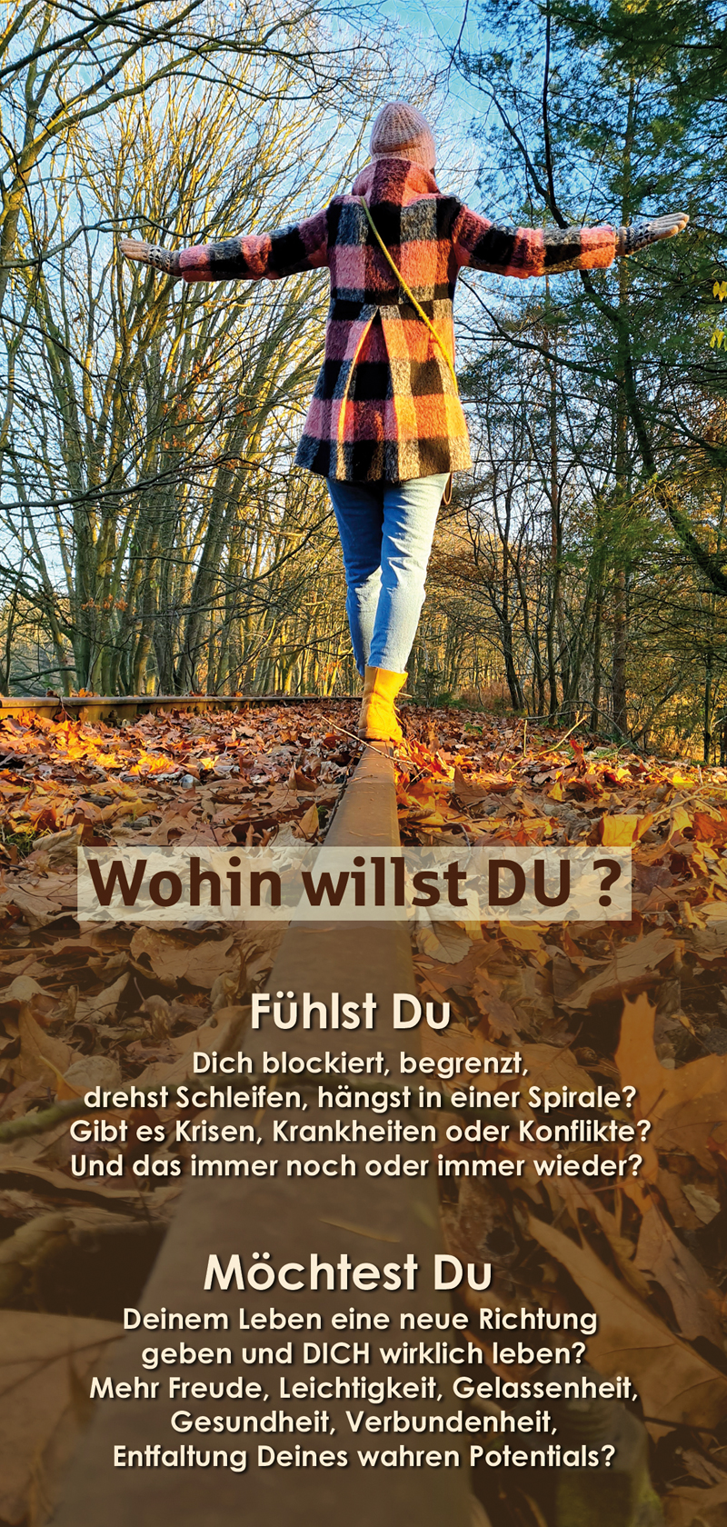 Mir ist es wichtig, dass Du, Deine Seele, Dein Unterbewusstsein alles für dieses spezielle Thema in dieser Sitzung Relevante zeigen und auch entsprechend gelöst werden kann, damit möglichst eine spürbare Veränderung eintritt. Bei Präsenz-Terminen (also keine Stellvertreter-Sitzung) bitte ich, ein Zeitfenster von zwei Stunden frei zu halten.