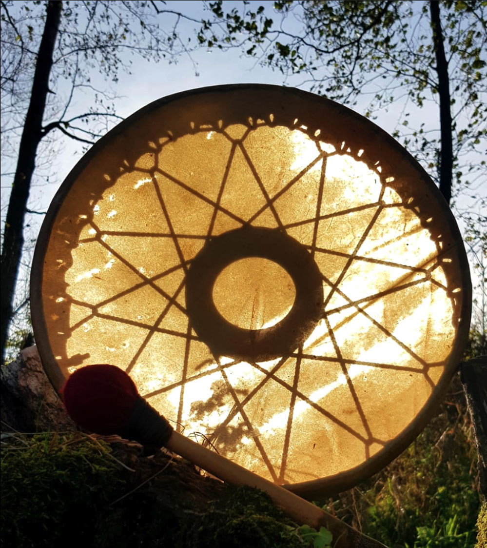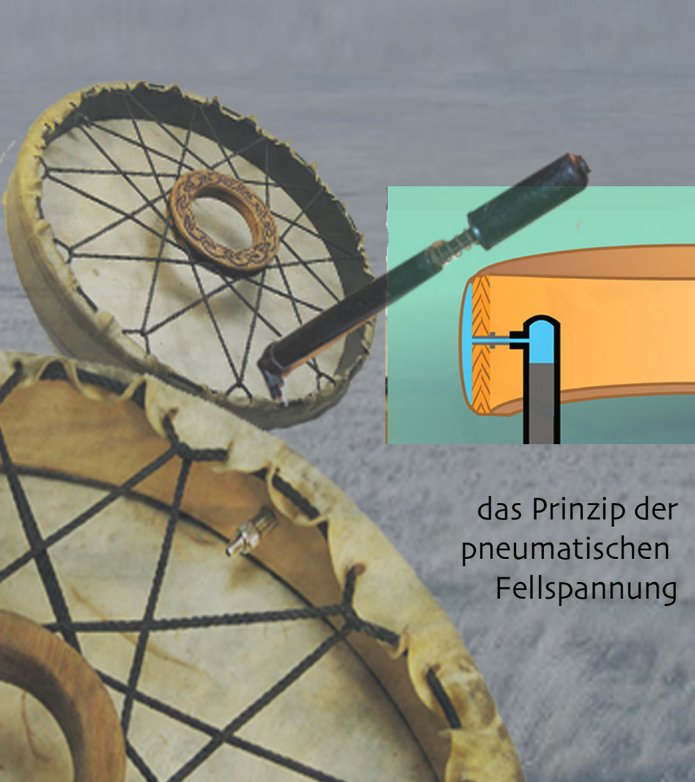 Das Prinzip Leder auf Rahmen oder Ring, als Rhytmus- o. Schamanisches Instrument, gab es wohl in der ganzen archaischen Welt. Und hat bis Heute nichts von seiner Faszination verloren.